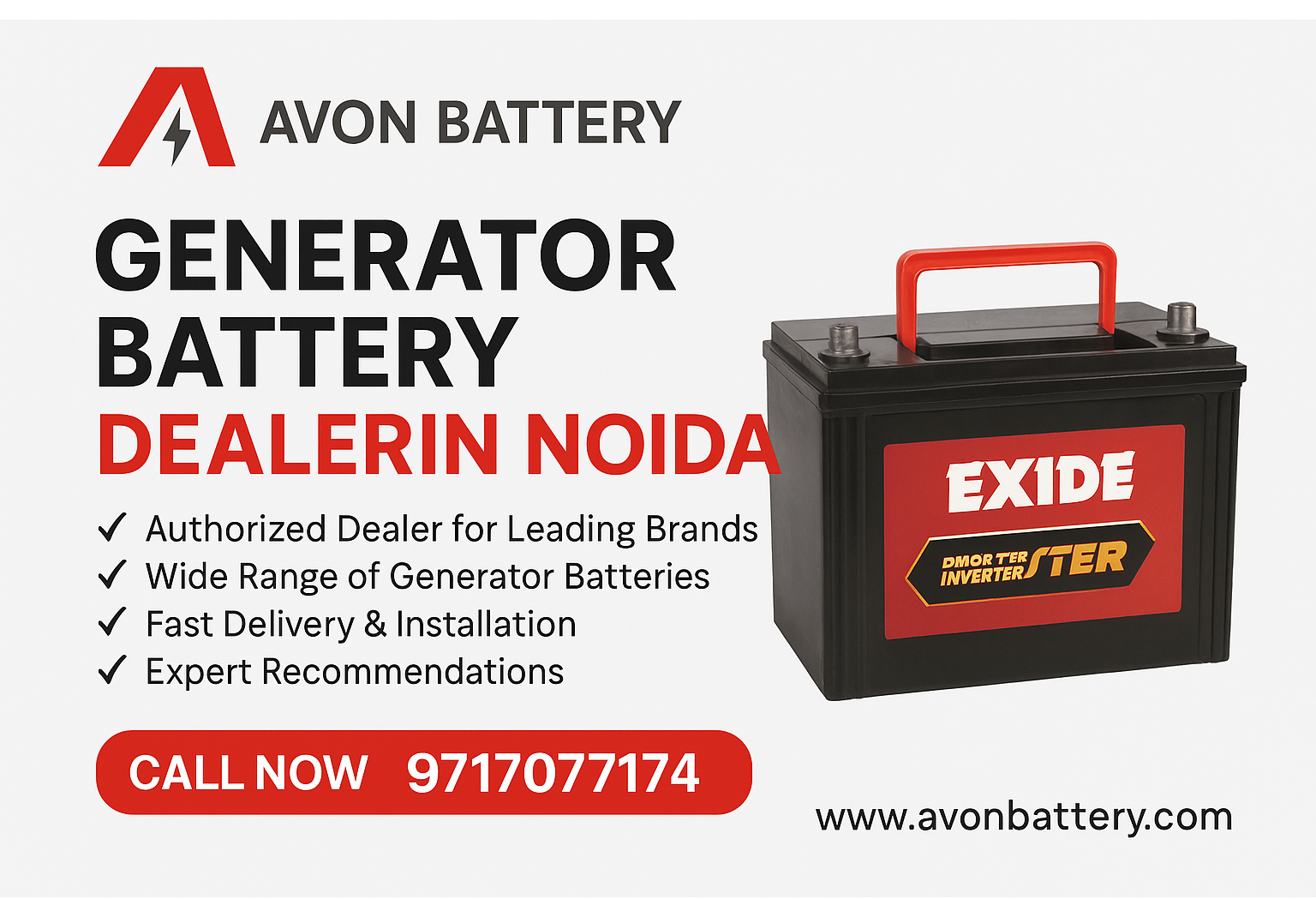 Looking for a generator battery dealer in Noida? Choose Avon Battery for trusted service, genuine products, and quick installation.